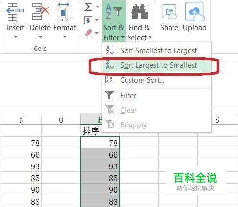 rank函数是排名函数,最常用的是求出某一个指定的数值在某区域内的排名.说到排名,最容易想到的应该是直接"排序",如下图,我们选择"从大到小"的排序方式.
