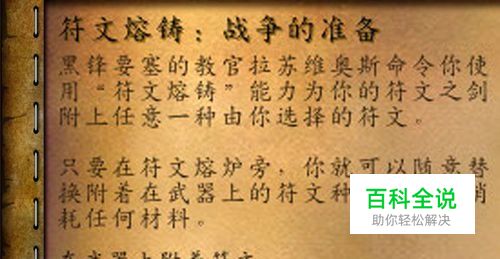 [符文熔铸:战争的准备]是死亡骑士的职业任务,任务要求玩家为武器附着符文。上一个任务[符文之剑]奖励了玩家三把武器,按"B"键打开背包可以看到,为其中任意一把符文就能完成任务。