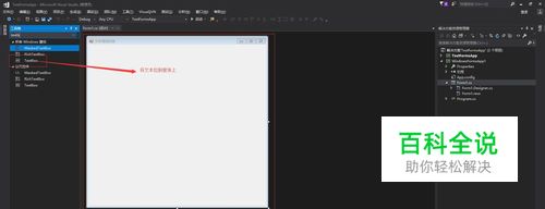 打开VS工具,创建一个winform窗体项目。系统会自动创建一个主窗体。在左边工具栏搜索textbox后,拉到窗体里面。