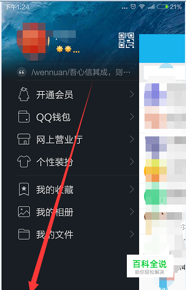 第一步,登陆手机QQ,然后点击左上角我们的头像,今天到如图界面,箭头所指的地方,设置管理。