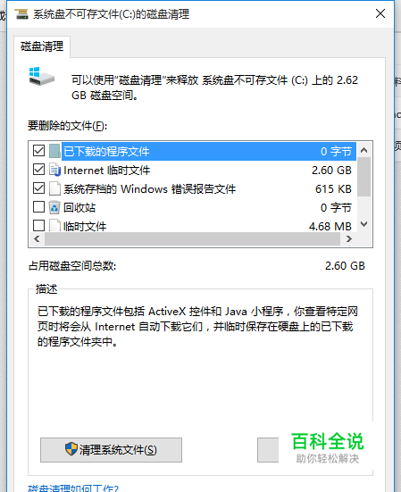 在这个对话框中选择“清理系统文件(S)”,然后又会提示正在计算,接着又出来了一个对话框。在“要删除的文件”列表框里找到“以前的 Windows 安装”这一项,然后把这一项前面的复选框选中,最后单击下面的“确定”按钮。