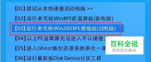 在主菜单界面用键盘方向键“↓”将光标移至“【02】运行老毛桃Win3PE增强版(旧电脑)”,回车确定,如图所示: