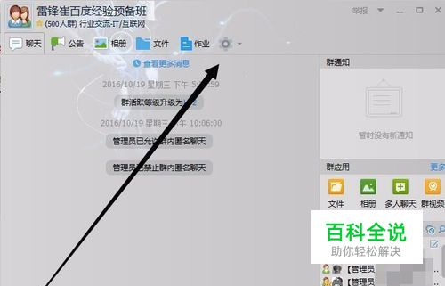 用户(需要是QQ群群主和管理员身份)打开一个QQ群,点击下图箭头设置的设置按钮选项。
