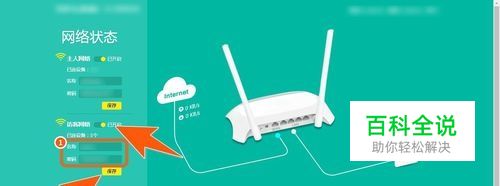 成功登录路由器后,在路由器的左侧,就能直接看到一个访客网络,如果要启用来客单独密码,那么就先把访客网络开启,如下图箭头所指。然后在1框中输入访客网络的名称和密码,再点击保存。