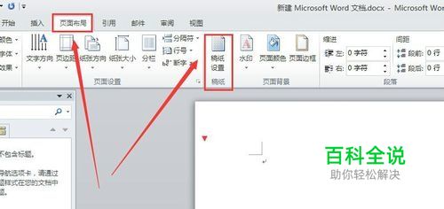 在菜单栏中,找到页面设置项,在“页面设置”功能区找到“稿纸设置”,如下图所示。按照小编图片提示的按钮操作即可。