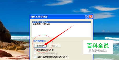 首先按住键盘上windows键+U键,打开放大镜。 然后点击启动。