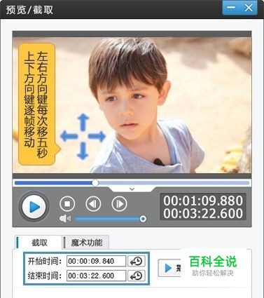 添加视频,截取需要倒放的视频片段 在“视频”面板,点击“添加视频”按钮,导入视频。 在弹出的“预览/截取”对话框中,利用带左箭头的拾取小按钮,自动拾获当前画面的时间点,配合使用上下方向键逐帧,左右方向键5秒微移,还能精确踩点,截取视频片段。