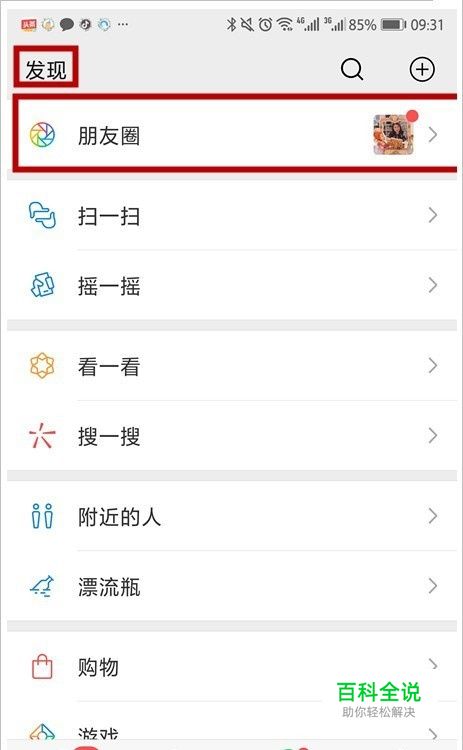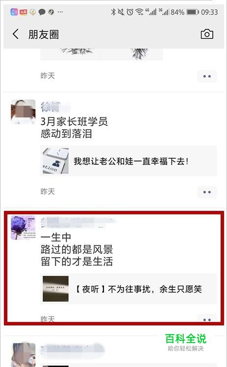 第二种方法是看到优秀的内容先保存在自己手机里,然后再转发,也算方便。首先我们还是打开 朋友圈。看到一个好友的朋友圈里面的风景图十分的好看,点击打开这些图片。如图所示。