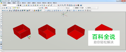 如下图,我复制了4个一样的实体,来分别演示删除1个面,2个面,3个面和对面2个面的效果。