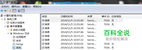 双击事件查看器-》选择windows日志-》系统,最好双击"系统"选项,右边小窗口就会出现一个列表数据,显示的是级别,日期和时间,来源,时间id,任务类型。这里有很多数据,我们不必知道是什么,只要看时间和时间id,接下来我们只需要把有用的数据显示出来