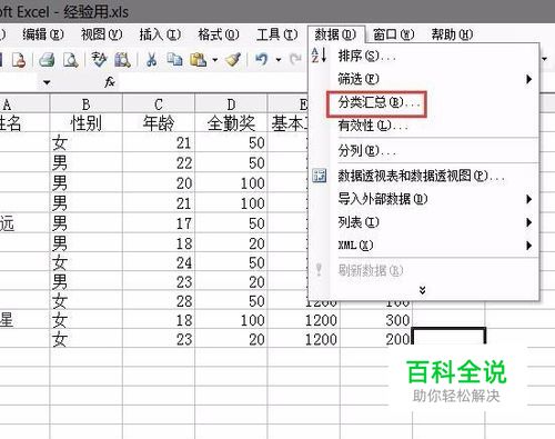 然后我们选中表格,点数据里的分类汇总。