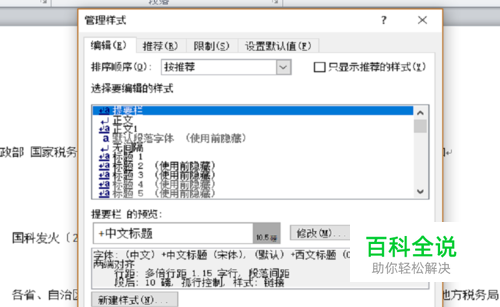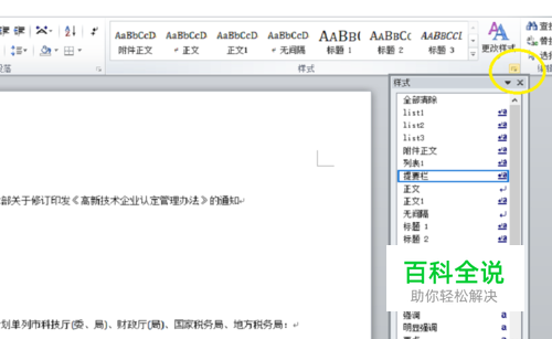 点击开始--样式的启动器按钮--选择管理样式