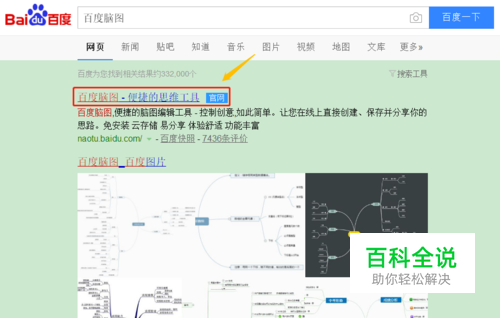 目前我们只能在浏览器上操作,所以通过电脑浏览器搜索"百度脑图"即可找到官网,如图所示...