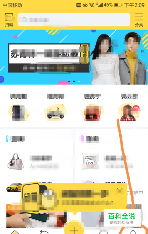 进入闲鱼界面后点按箭头指向的我的标志。