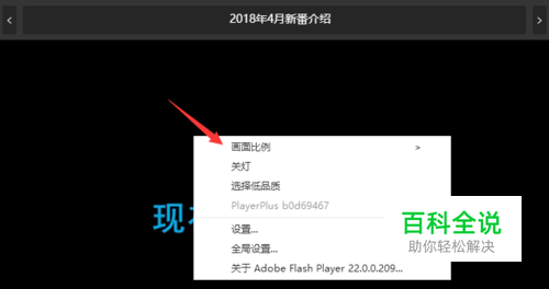 我们鼠标右键点击视频播放页面,即可看到有画面比例调节选项,点击它即可