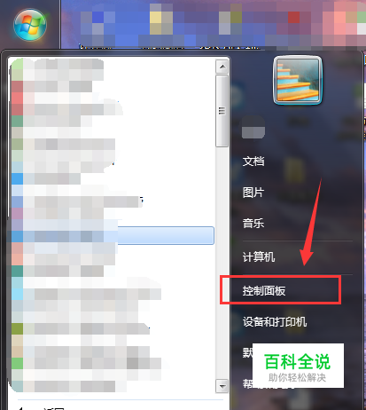 首先我们使用 鼠标点击 电脑桌面右下角开始按键。并且在弹出框中选择“控制面板”
