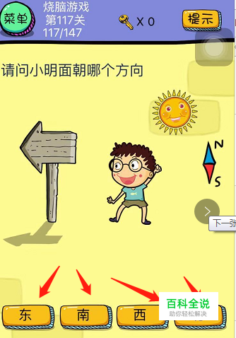 第117关:请问下面面朝哪个方向