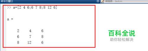 第二步打开matlab,在命令行窗口中输入a=[2 4 6;6 7 8;8 12 6],创建一个3行3列的a矩阵,如下图所示: