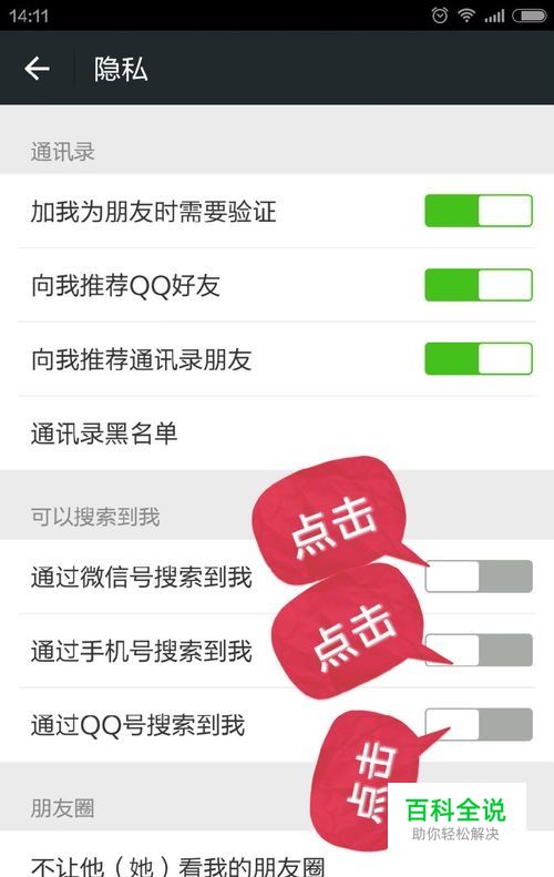 点击“可以搜索到我”的三项,可根据需要选择任意几个