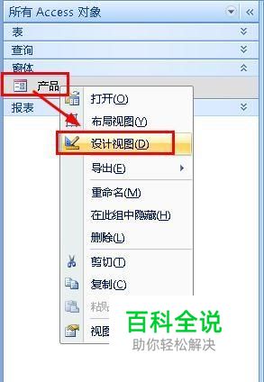 在access对象窗口,找到要修改的窗体,右键单击选择【设计视图】