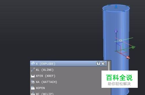 选中圆柱体,在命令栏中输入”X“命令,(x-为分解命令)。
