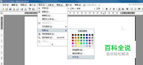 点击菜单栏的格式---背景---水印,如下图。