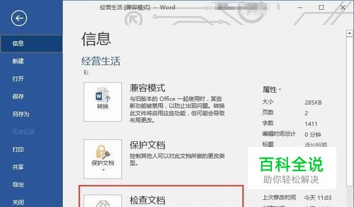 接下来检查文档中是没有其他隐藏信息。启动检查文档命令。