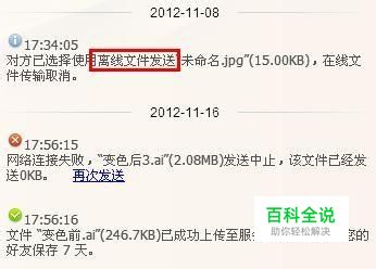 传送完成之后,聊天窗口提示离线文件上传成功,此时作为接收方会收到提示,XX用户给您发来离线文件