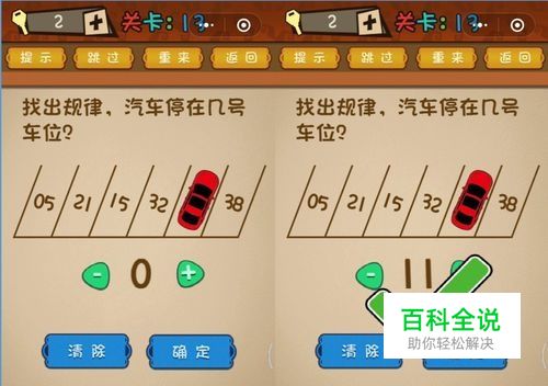 第13关 找出规律,汽车停在几号车位? 这一关我也不知道应该怎么过,反正我是一直试,试到过的。。答案是11。