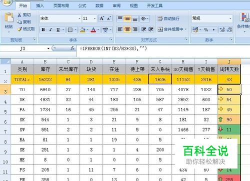 1.打开一张表我们要用的表,对我们最需要的那列进行颜色与箭头的标记,我在这里选 的是周转天数这一列,选中我们需要的数列,如图由于J2是总体的周转天数所以我没有选它,我选中的是J3-J15这些数据。