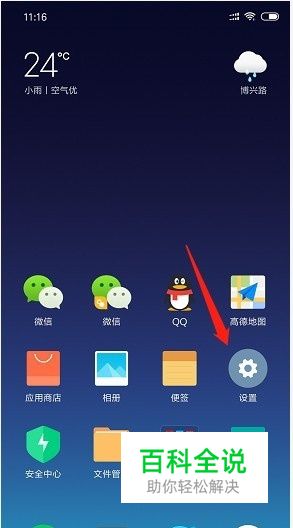 第一步:我们首先打开我们的小米8手机的桌面,找到设置(齿轮状图标)。