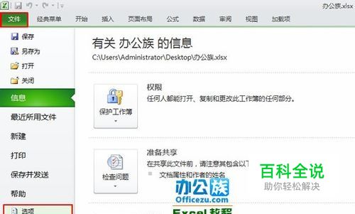 打开Excel2010,依次点击“文件”→“选项”。