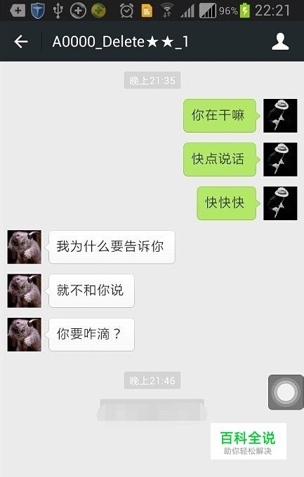 第二种方法:逐条内容删除 第一种方法虽然较为简单省事,但是可能也会将聊天内容里较为重要的信息删除,如果有这种担心的话,就不能采取这种办法了,而要逐条删除 ①首先,打开微信好友的聊天内容窗口,如图。