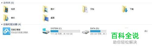 再次点击桌面的计算机图标/我的电脑图标进入资源管理器,可以看见百度云管家图标已经从我的电脑中消失了,如果还存在可尝试重启计算机