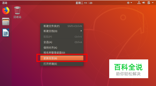 进入ubuntu系统桌面,右键 更换背景。