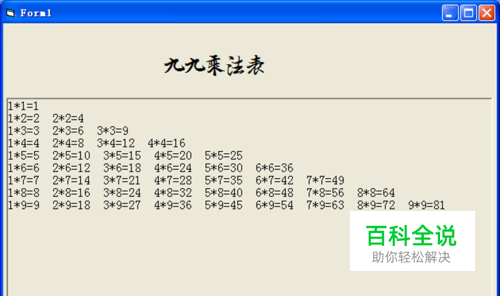 点击工具栏上的运行按钮进行调试运行,点击fram后发现结果出现在窗体form1上,这说明输出的位置不对,要进行修改,应该在fram1上输出,所以修改为picture1.Print J & "*" & I & "=" & M & " "即可。