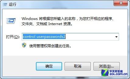 然后在命令框里输入“control userpasswords2”(不含引号),按回车键,打开用户账户对话框,将“要使用本机,用户必须输入用户名和密码”前面的对勾取消,最后点击“确定”按钮保存设置。