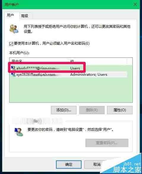 12、我们再在运行对话框中输入Rundll32 netplwiz.dll,UsersRunDll,回车,打开用户帐户窗口,可以看到:abcdef****@sina.com用户已经添加到本机用户(U)表中;