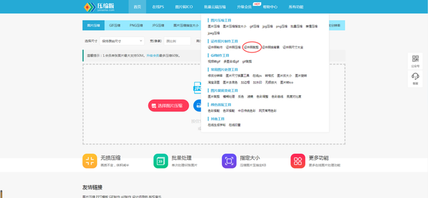 1、打开压缩啦网站,鼠标移入所有功能,点击证件照裁剪功能进入编辑页面。