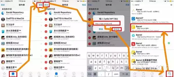 打开Cydia,再点击软件源,编辑-添加:repo.xarold.com