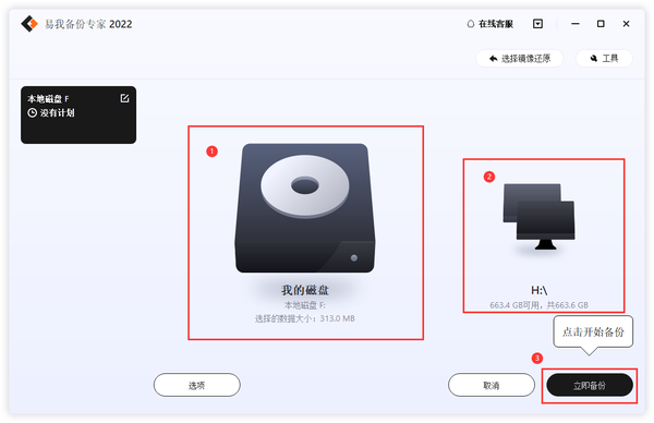 如果你对备份有更高的要求,可以在备份前,点击“选项”进行个性化设置,关于这些高级功能的详细介绍,请访问易我备份专家用户指南!