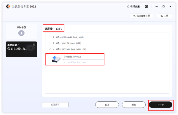 步骤3.设置还原到的磁盘位置