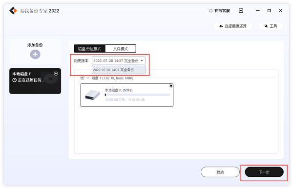 步骤1.选择还原(或镜像还原)