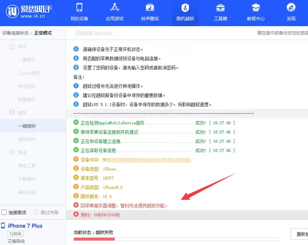 接着说依赖证书,目前除了我们这些第三方平台提供在线越狱外,你还能在电脑端爱思助手完成越狱,但,近日爱思助手无法提供越狱了,原因是,苹果服务器又调整了,导致无法安装越狱。