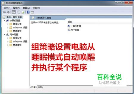 之后我们进入到组策略对话框,开始设置电脑从睡眠模式自动唤醒并执行某个程序,进行添加程序的操作,如图所示。