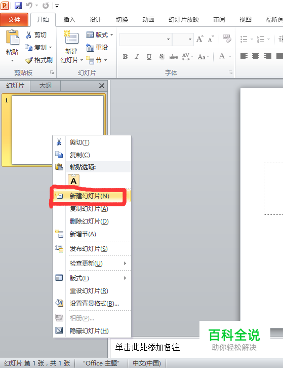 鼠标放到左侧第一张幻灯片上,点击右键,新建几张张幻灯片
