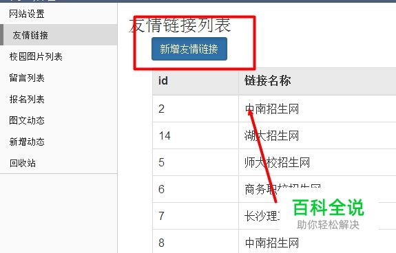 登录成功以后在后台操作界面中找到如图中友情链接的选项