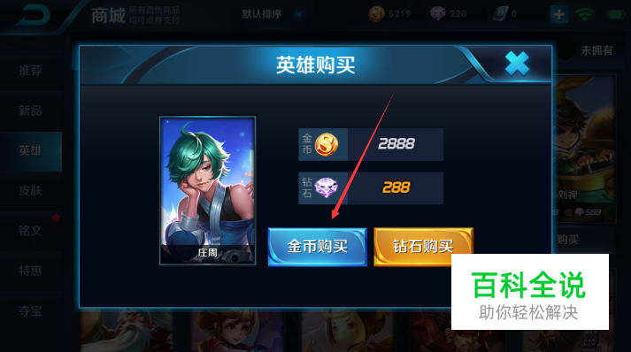 方法二:金币购买 在游戏中玩家每参与一场比赛,不管胜利还是失败,结束后都能获得相应的金币。只要玩家拥有足够的金币就能在商城中通过金币购买一些英雄。