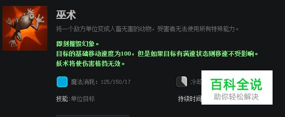 巫术是莱恩将敌方单位变成一直蛤蟆,无法攻击和施放技能。
