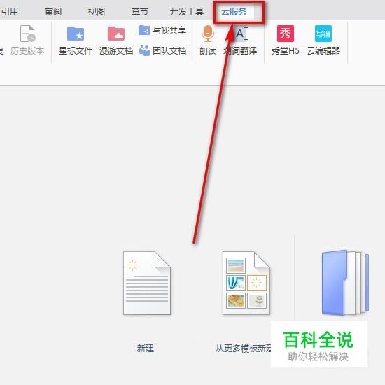 接着就开始转换了,打开WPS,然后点击“云服务”菜单。